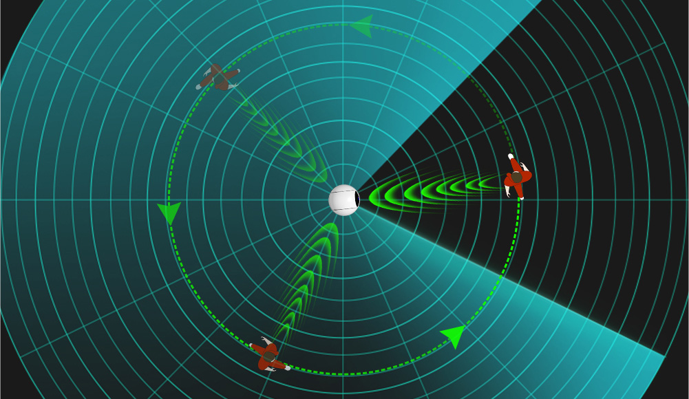 When motion occurs outside the lens, radar detects it immediately and determines the target’s position.