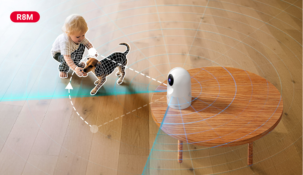 •R8M (Indoor): Perfect for homes, offices, and shops requiring precise indoor monitoring. Supports human and pet detection, plus one-touch call.