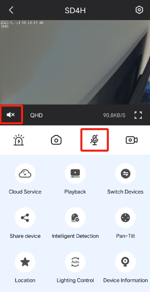Step2: Tap on microphone icon to speak to the people around the camera.