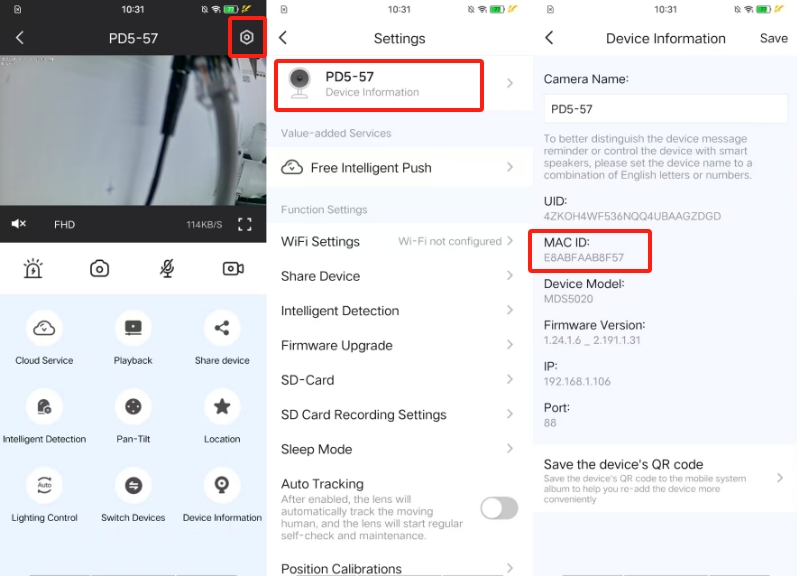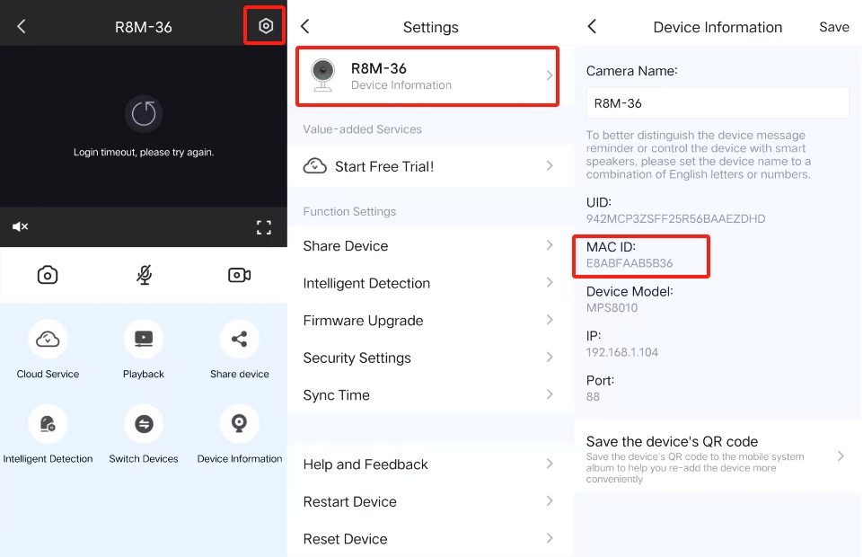 Step3: Find mac id and uid info under Device Information.